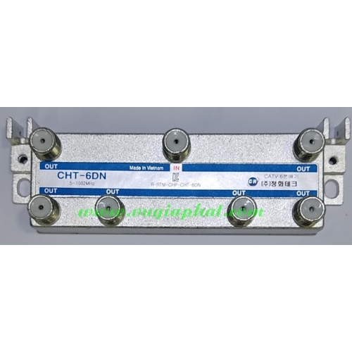 Bộ chia tín hiệu truyền hình cáp CHT-6DN 06 đường dùng để chia tín hiệu hiệu truyền hình cáp, truyền hình DVBT2, tín hiệu truyền hình cáp ra 6 đường, tín hiệu đầu ra không thay đổi so với tín hiệu đầu vào. với tần số làm việc từ 5mhz-1ghz