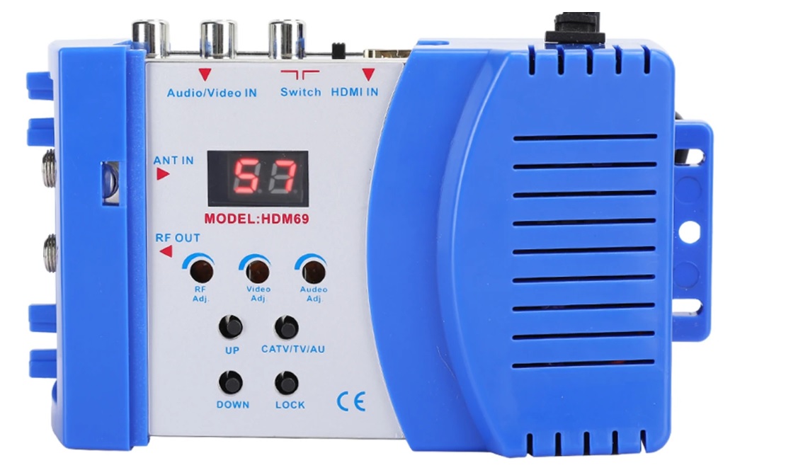 Bộ điều chế RF HDM69 dùng để chuyển tín hiệu AV/HDMI sang RF analog. Bộ điều chế RF HDM69 thường được sử dụng triển khai thống mạng truyền hình CATV, chèn tín hiệu các kênh truyền hình vệ tinh, tín hiệu camera, tín hiệu đầu phát DVD… vào hệ thống truyền hình cáp của tòa nhà, khách sạn…..